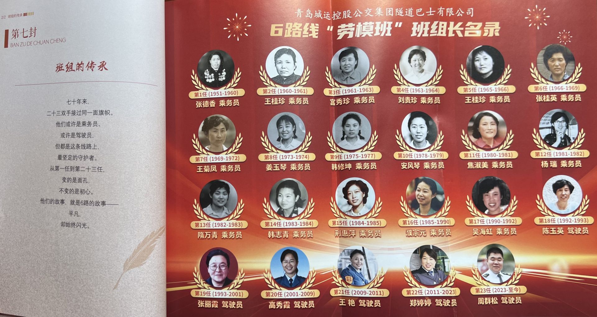 正是這份跨越代際的情感,讓6路線的傳承有了更深遠的意義。2020年全線更換純電動公交車,2023年勞模文化館獲評省級勞模工匠創(chuàng)新工作室,2025年線志付梓成書——每一次跨越,都在為這條“最老公交線”注入新的時代內(nèi)涵。而從入選青島市慶祝建黨百年大型紀(jì)錄片《鑄魂》,到紀(jì)錄片《傳旗》成為全省黨員培訓(xùn)教材,6路線的故事早已超越一條公交線路的范疇,成為彰顯城市精神、傳遞時代正能量的流動窗口。