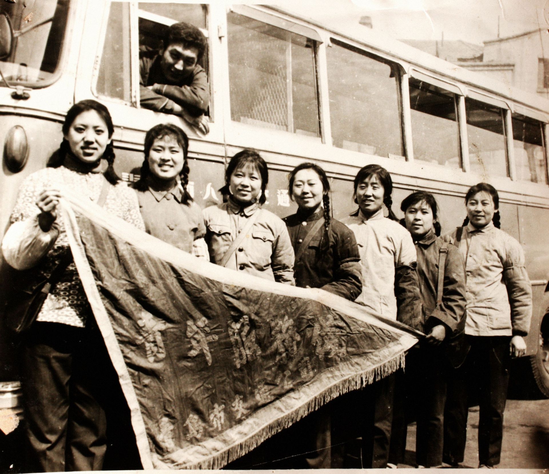 在青島城運控股集團“公交勞模文化館”展廳內(nèi),一張拍攝于1978年的黑白老照片格外引人注目:7名乘務(wù)員手持“青年服務(wù)線”線旗,在公交車前合影留念。照片中間梳著兩條麻花辮的年輕姑娘名叫安風(fēng)琴,她先后獲得市勞模、省勞模、全國“五一勞動獎?wù)隆钡葮s譽,還代表6路線進京領(lǐng)取了團中央頒發(fā)的“全國新長征突擊隊”獎狀。