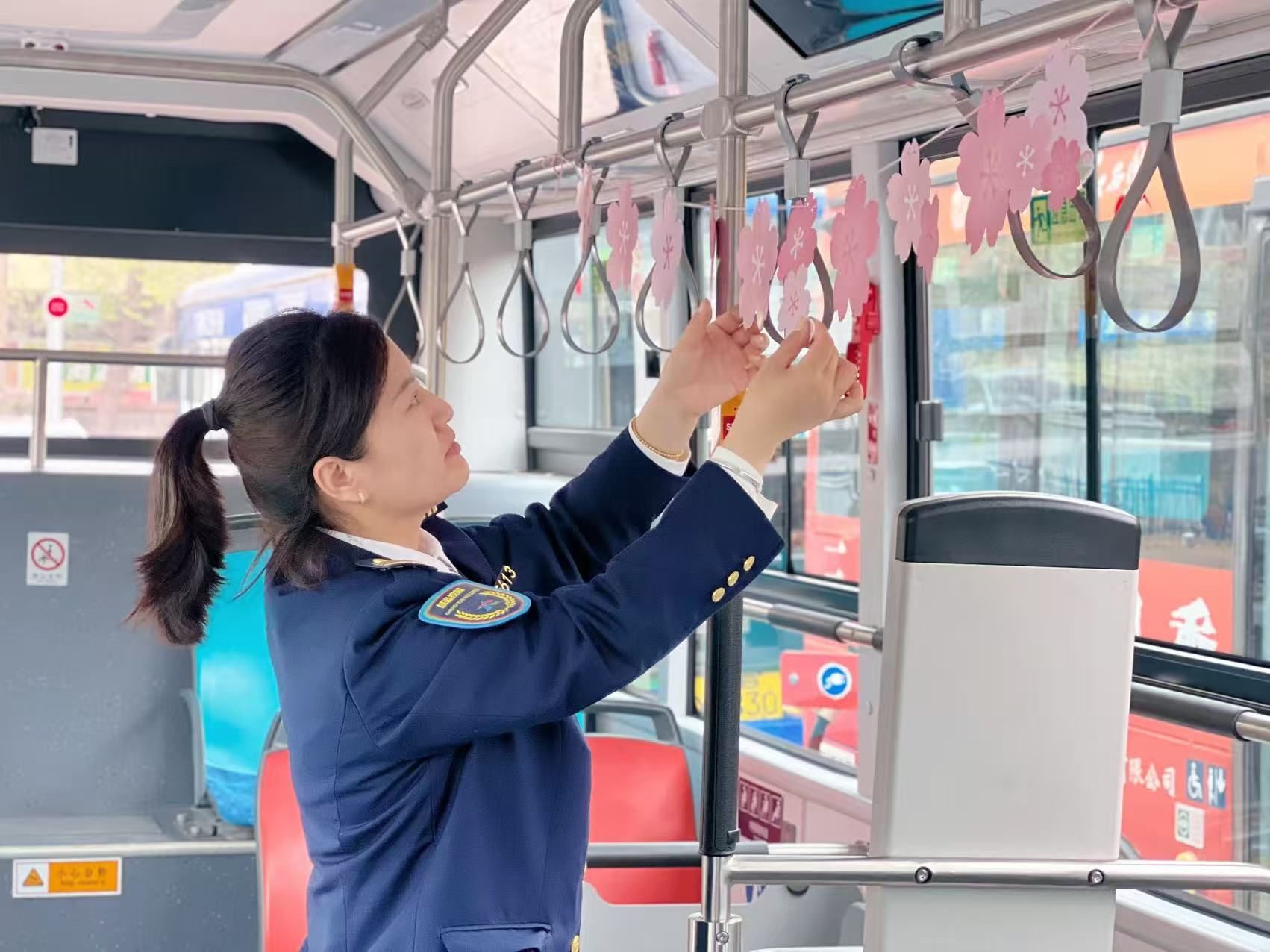 “既能坐車,又能打卡,還能領(lǐng)到好看的香片,太貼心了!”市民欒女士剛上車,就被車廂的布置所吸引,忍不住拿出手機(jī)拍照留念。為提升乘客出行體驗(yàn),市北巴士公司的工作人員還準(zhǔn)備了櫻花主題香片,乘客只需在車廂內(nèi)打卡拍照,并分享至社交媒體即可免費(fèi)領(lǐng)取。不少乘客表示,這樣的主題車廂不僅美化了出行環(huán)境,更讓乘車時光變得有趣。